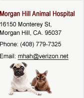 | Morgan Hill Animal Hospital maintains high standards to provide individualized care to each boarding pet. There are separate climate controlled boarding wards for all sizes of dogs and cats. A large area for walking and playing with the dogs is available as well. Veterinarian is available for timely care if any boarding pet needs medical attention. Daily pet care records are maintained. |